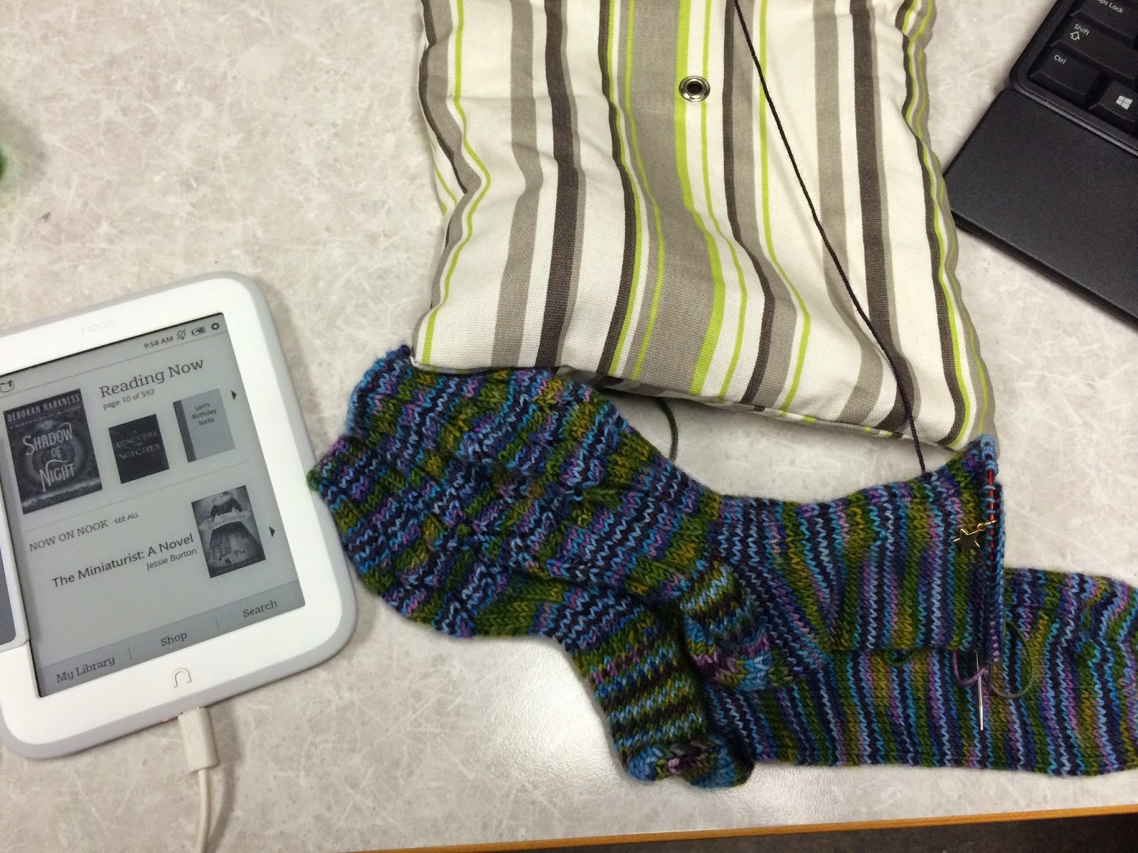 I have made a lot of progress on my friend L's birthday socks. Her birthday is this Saturday and I am hoping to have them done by then. Keep your fingers crossed; with any luck I will post a FO post this Friday!